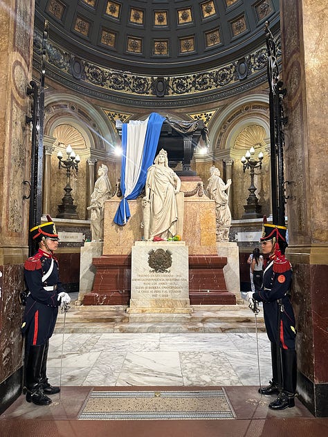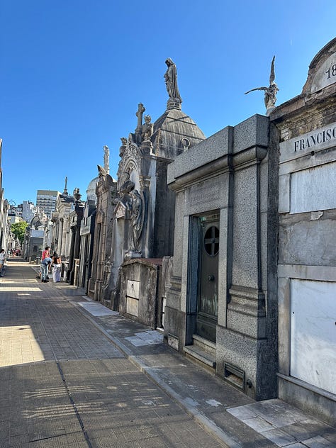 Though our visit was short, we made it to the heart of the city to explore areas where Eva Perón (Evita) made her mark. She is especially remembered for championing women’s suffrage, playing a key role in securing the right to vote in 1947. We visited the government building where she delivered her famous speeches and explored the iconic Recoleta Cemetery where she is laid to rest. We also squeezed in a few local markets to try essential Argentine eats, like empanadas.