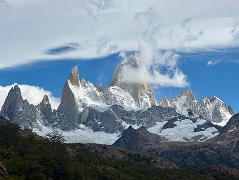 Leaving BA, we headed south into Patagonia. Our first stop was El Chaltén. We flew into El Calafate, rented a car, and began the long trek. Along the way, we picked up a couple of hitchhikers—a first for us! We really enjoyed their company and hearing their adventure stories during the three-hour drive. Hitching makes a lot of sense here, as rental prices are steep and the distances are massive.
