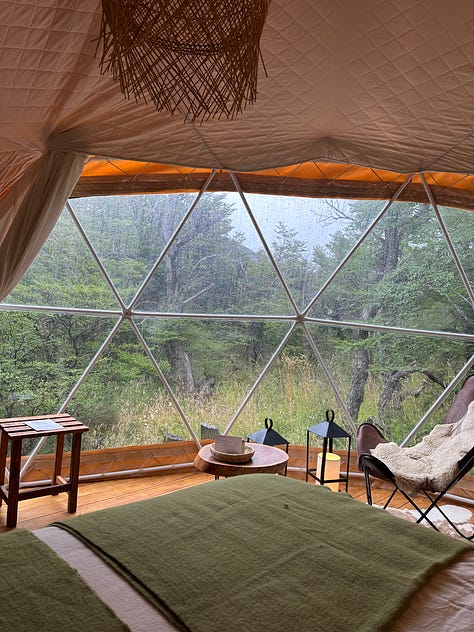 El Chaltén is a quaint mountain town at the edge of the northern Patagonia region, famous for the Fitz Roy range. We stayed in a fun glamping resort in a private eco-dome with all meals included that ended up being gourmet and delicious. While the town itself is simple and utilitarian, the domes were a blast and the landscape was beautiful. We spent our days tackling “must-do” treks like Laguna de los Tres and Laguna Torre. These are long, 12-mile hikes that lead up to alpine lakes with massive peaks looming directly above. Because these trails are so popular, you’re often dodging hundreds of other hikers, which keeps the atmosphere lively, but the viewpoints along the way are absolutely worth the effort.