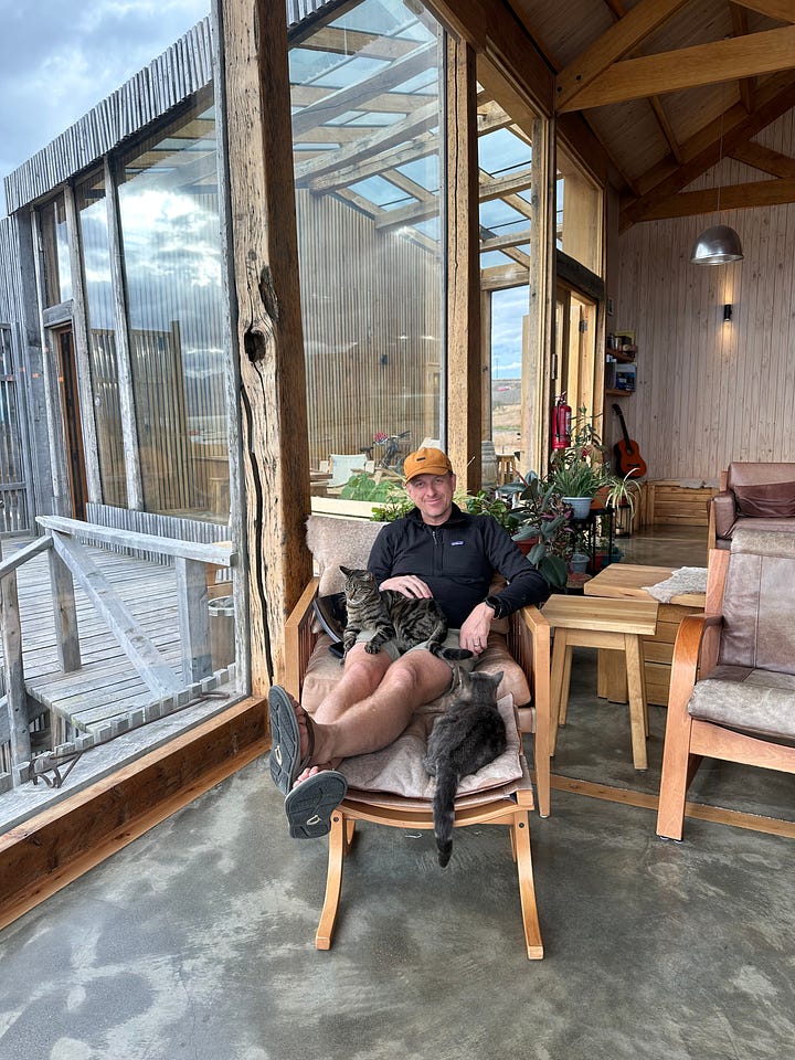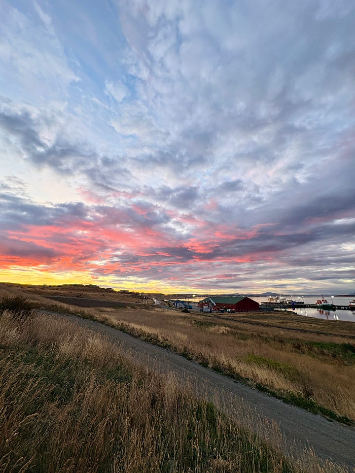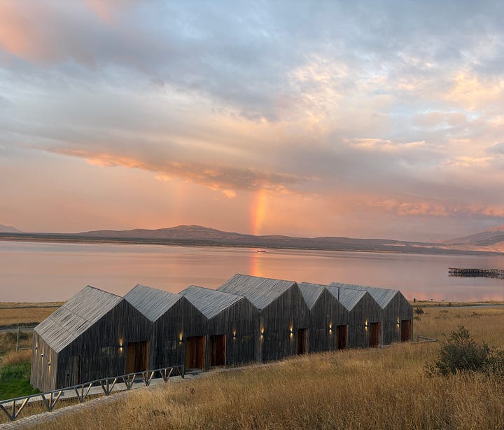 Honestly, figuring out the best way to explore Patagonia was a challenge, as it spans two countries and two major national parks. The most popular activity in this park is trekking the “W.” This is a 50+ mile, multi-day backpacking trip that typically takes 4–5 days, with hikers staying in group lodges (refugios), tents, or similar accommodations. Not only were the park accommodations booked well in advance, but sleeping in a tent and backpacking for that long wasn’t on our to-do list this time around. Instead, we chose to stay in town in nicer accommodations and make day trips into the park, much like we did in El Chaltén. However, while the trailhead in Chaltén was only a 10-minute drive away, here in Puerto Natales, we were about 90 minutes out! Regardless, we stayed in a beautiful hotel overlooking a gulf that connects to fjords, which eventually lead to the Pacific Ocean about 100+ miles away by boat. It is a fascinating area where these fjords essentially guard the mainland from the open ocean.
