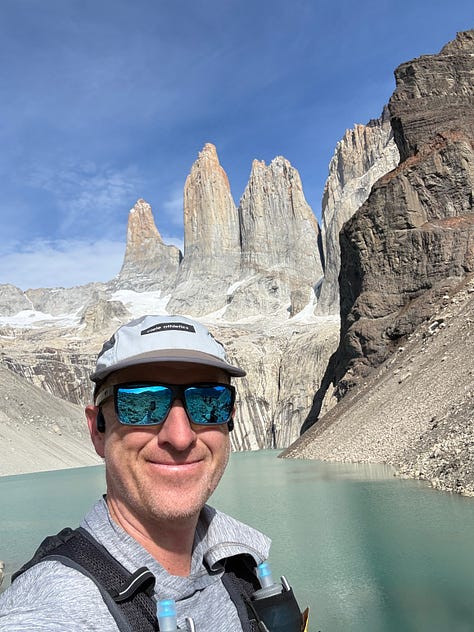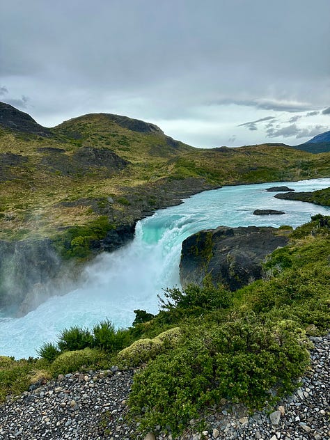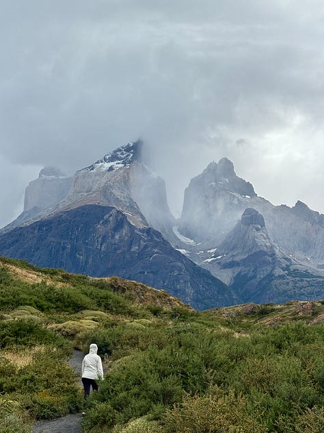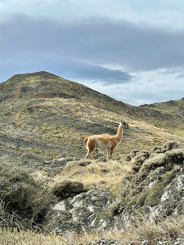 We drove into Torres del Paine a couple of times to see this side of Patagonia and experienced amazing landscapes that almost didn’t look real. I hiked the famous Torres del Paine trail, which was another long trek full of hikers, eventually leading to beautiful views of three mountain towers with a glacial lake below. I was blown away by the vista at the end, but honestly, the number of people on the trail was substantial and took away from the beauty. I assume this trail is the most popular Patagonian day hike, resulting in it being crowded by “W” hikers and individuals arriving by tour bus or car. On my drive back, I gave a couple a ride into town and enjoyed hearing about their multiple days in the park and how they had woken up at 2:00 AM to see the towers at sunrise.